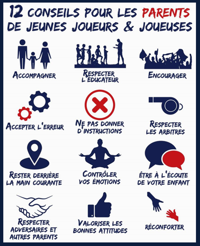 • Les parents doivent être derrière les mains courantes et être sensibilisés à un climat positif et bienveillant sur le plateau !