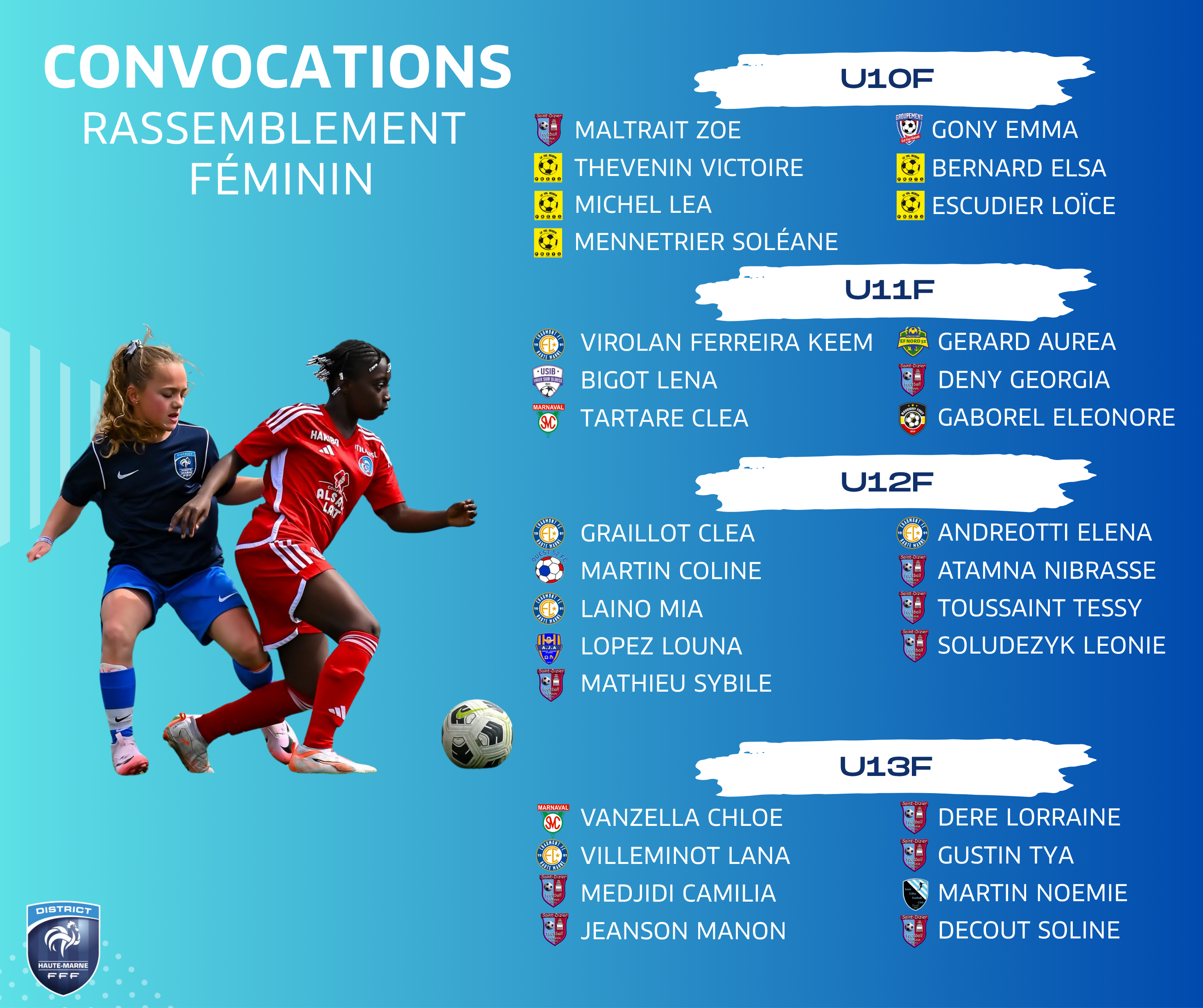 - Retrouvez la liste des joueurs convoqués en pièce jointe